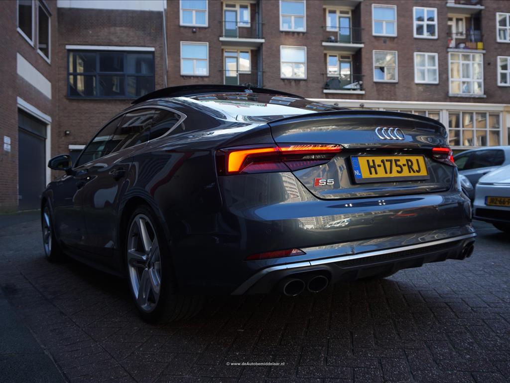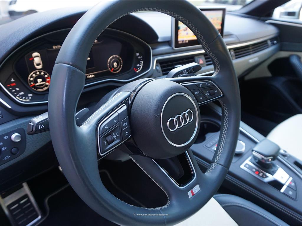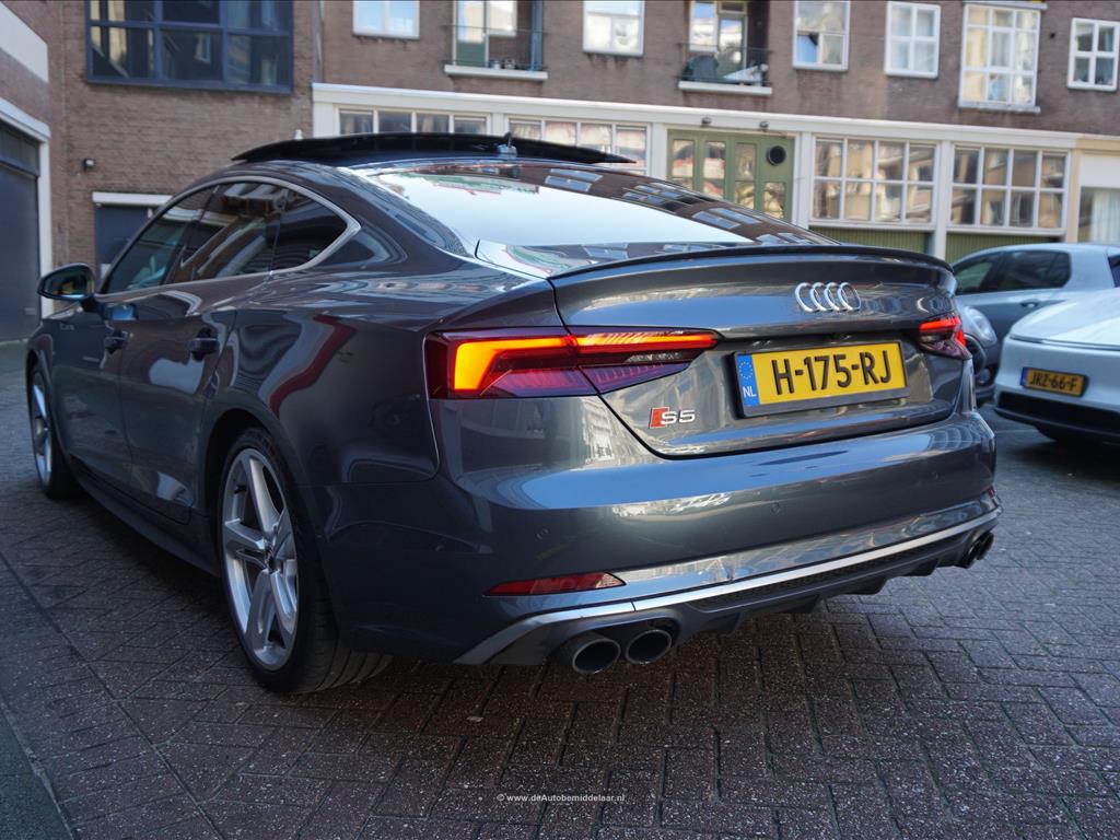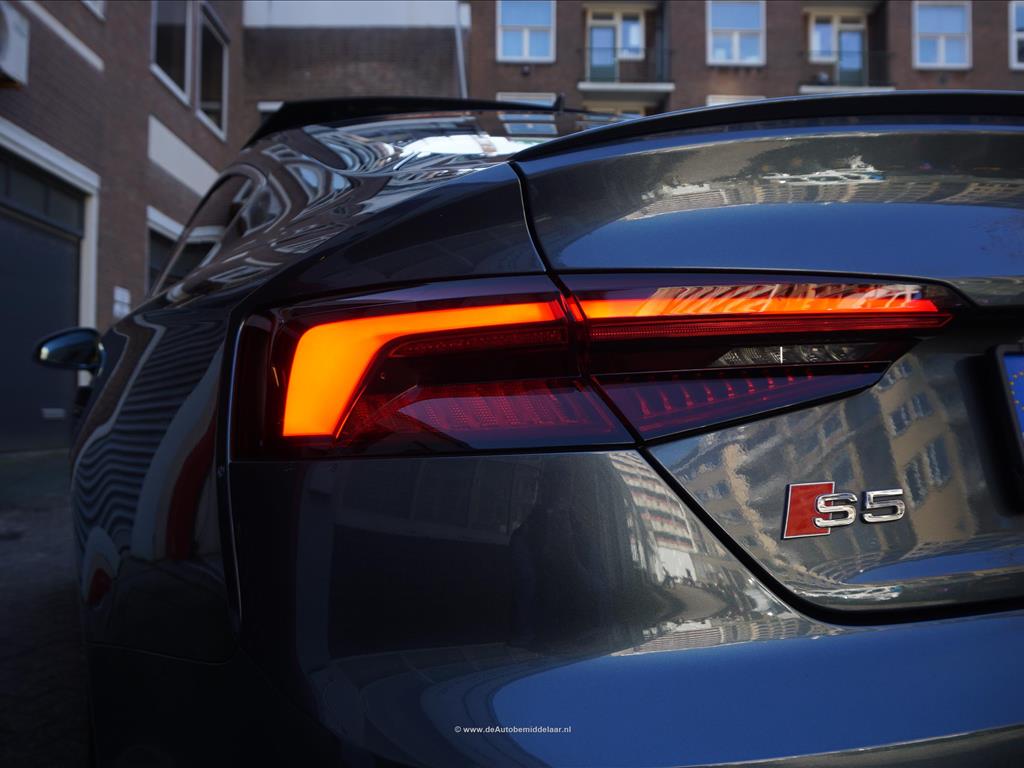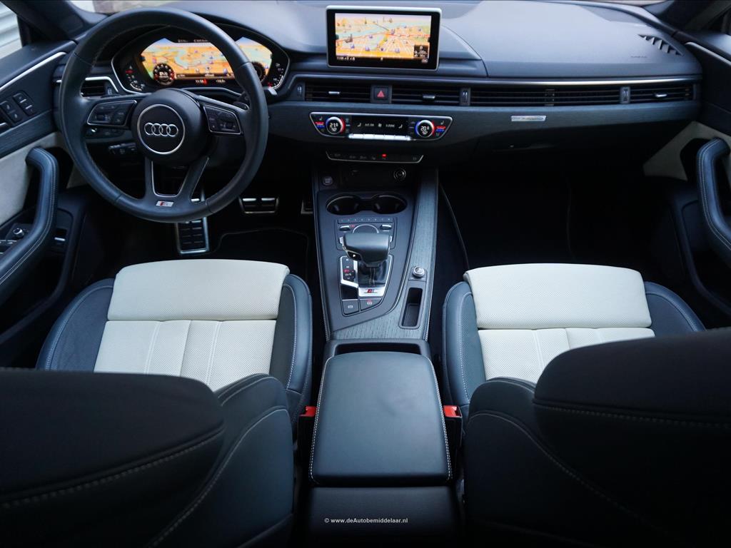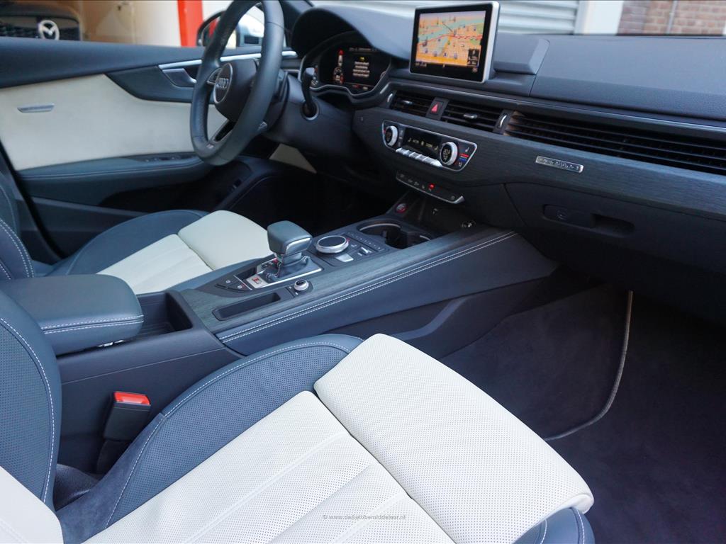Fraaie Audi S5 Sportback 3.0 TFSI Quattro | Audi Exclusive uitgevoerd (door koper naar wens samengesteld, dus unieke specs) | Panoramadak | Bang & Olufsen Premium Audio | Adaptieve cruise control | Lane departure met stuurcorrectie | Dodehoek detectie | Sfeerverlichting | Stoelverwarming 4x + stoelventilatie + memory pakket | Prachtig Audi Exclusive interieur, zwart gecombineerd met licht creme en afgezet met donker eikenhout | 360 (TopView) camera | Head Up Display | Matrix LED | Keyless | 19inch Audi sportvelgen | Rode remklauwen | Privacy glass achterpassagiers | Alu design spiegelkappen | Chrome line exterieur accenten | Alarmsysteem | Optioneel 1 jaar garantie € 2.999,- | achterbank in delen neerklapbaar, achterspoiler, airco separaat achter, alarm klasse 3, aluminium delen exterieur, aluminium interieur afwerking, Anti Blokkeer Systeem, armsteun voor, audio installatie, Autonomous Emergency Braking, bandenspanningscontrolesysteem, bestuurdersairbag, Bluetooth, boordcomputer, Brake Assist System, buitenspiegels elektrisch verstel- en verwarmbaar, centrale vergrendeling met afstandsbediening, connected services, cruise control, dimlichten automatisch, electronic climate control, elektrisch bedienbare achterklep, elektrische ramen achter, elektrische ramen voor, Elektronisch Sper Differentieel, Elektronisch Stabiliteits Programma, elektronische remkrachtverdeling, hill hold functie, hoofd airbag(s) achter, hoofd airbag(s) voor, kunstlederen/microvezel bekleding, LED achterlichten, LED dagrijverlichting, LED koplampen, lendesteun(en) verstelbaar, multimedia-voorbereiding, navigatiesysteem full map + hard disk, passagiersairbag, regensensor, ruitensproeiers/wisserbladen verwarmbaar, schakelpaddles, sportonderstel, sportstoelen, sportstuur, spraakbediening, start/stop systeem, stuur leder, stuur multifunctioneel, stuur verstelbaar, vervolgbotsing preventie, volledig digitaal instrumentenpaneel, voorstoel(en) elektrisch verstelbaar, voorstoelen verwarmd, warmtewerend glas, WiFi, zij airbag(s) voor, achterstoelen verwarmd, audio installatie premium, buitenspiegels elektr. met geheugen, buitenspiegels elektrisch inklapbaar, DAB, elektrisch glazen panorama-dak, elektrisch verstelb. bestuurdersstoel met geheugen, extra getint glas achter, gelimiteerd slipdifferentieel, head-up display, houtafwerking interieur, koplampreiniging, lichtmetalen velgen 19inch, luxe lederen bekleding, matrix LED koplampen, premium kleur, rijstrooksensor met correctie, smartphone integratie, stoel ventilatie voor, variabele stuuroverbrenging, verwarmde voorruit, bots waarschuwing systeem, cruise control adaptief met Stop&Go, dodehoek detectie, file assistent, rijstrooksensor met correctie, verkeersbord detectie, achteruitrij assistent, achteruitrijcamera, dodehoek detectie, parkeer assistent parkeersensor voor, rondomzicht camera.