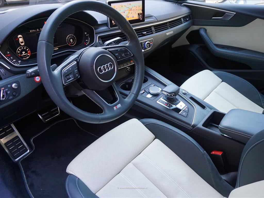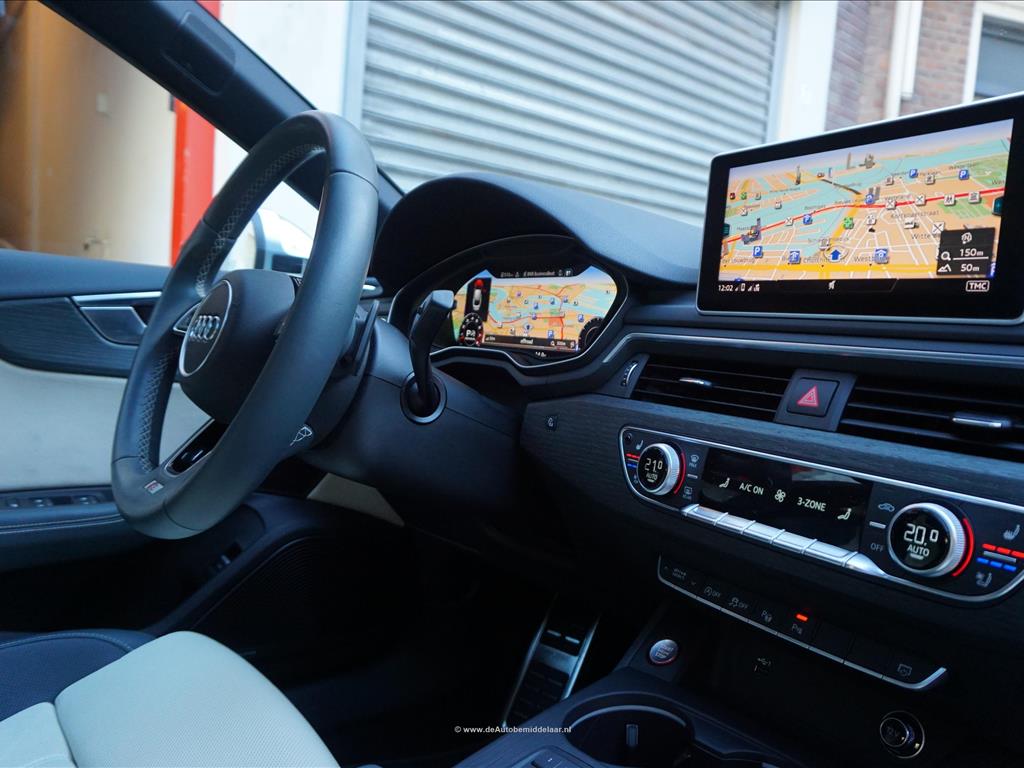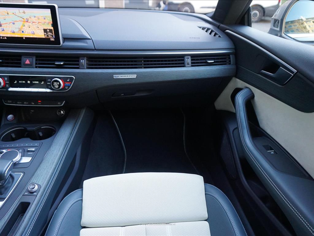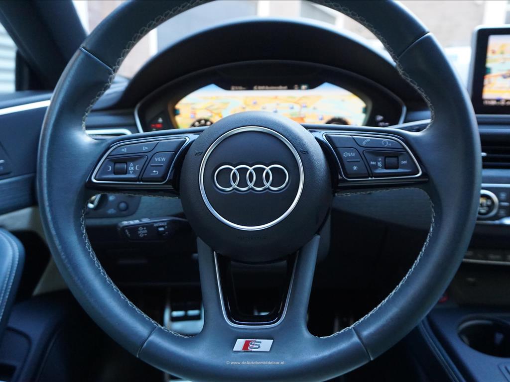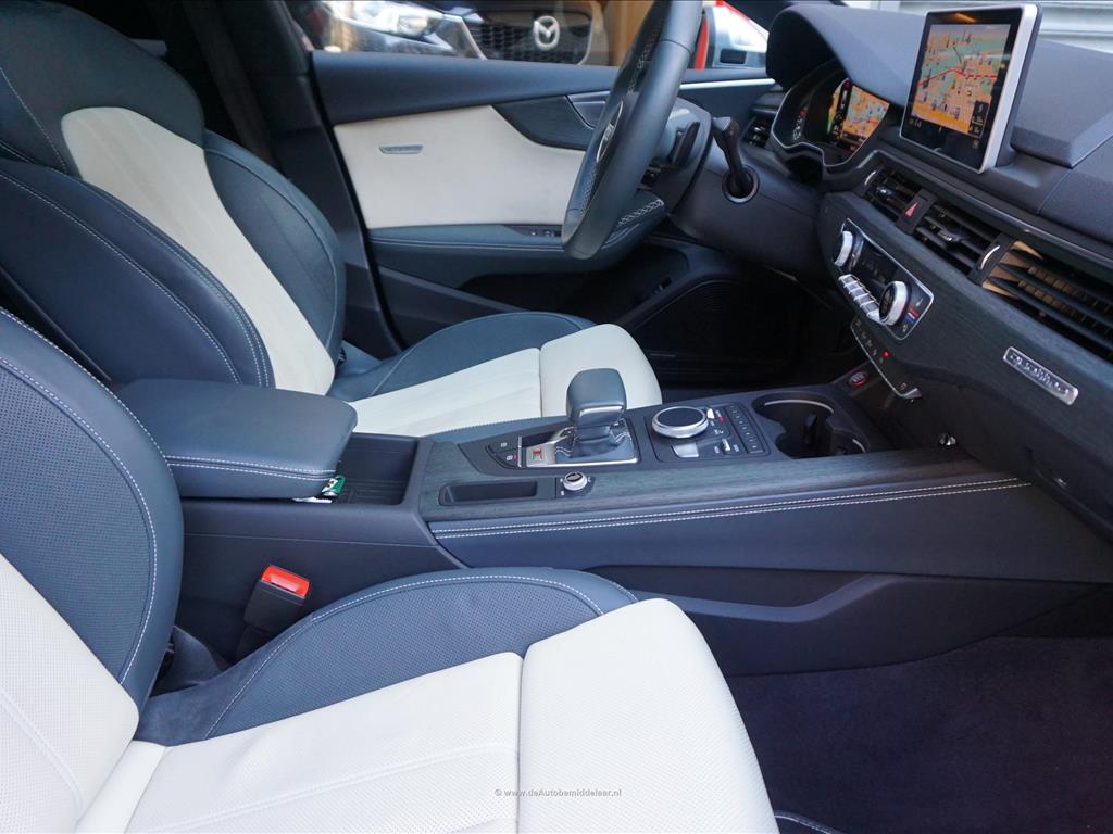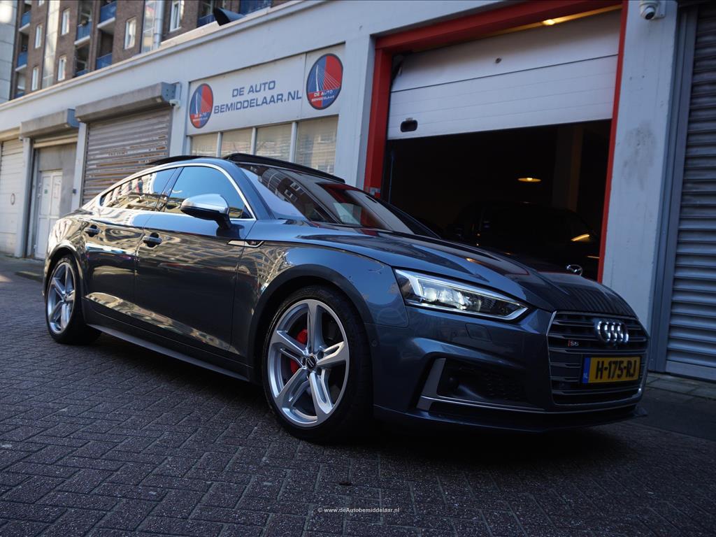 Fraaie Audi S5 Sportback 3.0 TFSI Quattro | Audi Exclusive uitgevoerd (door koper naar wens samengesteld, dus unieke specs) | Panoramadak | Bang & Olufsen Premium Audio | Adaptieve cruise control | Lane departure met stuurcorrectie | Dodehoek detectie | Sfeerverlichting | Stoelverwarming 4x + stoelventilatie + memory pakket | Prachtig Audi Exclusive interieur, zwart gecombineerd met licht creme en afgezet met donker eikenhout | 360 (TopView) camera | Head Up Display | Matrix LED | Keyless | 19inch Audi sportvelgen | Rode remklauwen | Privacy glass achterpassagiers | Alu design spiegelkappen | Chrome line exterieur accenten | Alarmsysteem | Optioneel 1 jaar garantie € 2.999,- | achterbank in delen neerklapbaar, achterspoiler, airco separaat achter, alarm klasse 3, aluminium delen exterieur, aluminium interieur afwerking, Anti Blokkeer Systeem, armsteun voor, audio installatie, Autonomous Emergency Braking, bandenspanningscontrolesysteem, bestuurdersairbag, Bluetooth, boordcomputer, Brake Assist System, buitenspiegels elektrisch verstel- en verwarmbaar, centrale vergrendeling met afstandsbediening, connected services, cruise control, dimlichten automatisch, electronic climate control, elektrisch bedienbare achterklep, elektrische ramen achter, elektrische ramen voor, Elektronisch Sper Differentieel, Elektronisch Stabiliteits Programma, elektronische remkrachtverdeling, hill hold functie, hoofd airbag(s) achter, hoofd airbag(s) voor, kunstlederen/microvezel bekleding, LED achterlichten, LED dagrijverlichting, LED koplampen, lendesteun(en) verstelbaar, multimedia-voorbereiding, navigatiesysteem full map + hard disk, passagiersairbag, regensensor, ruitensproeiers/wisserbladen verwarmbaar, schakelpaddles, sportonderstel, sportstoelen, sportstuur, spraakbediening, start/stop systeem, stuur leder, stuur multifunctioneel, stuur verstelbaar, vervolgbotsing preventie, volledig digitaal instrumentenpaneel, voorstoel(en) elektrisch verstelbaar, voorstoelen verwarmd, warmtewerend glas, WiFi, zij airbag(s) voor, achterstoelen verwarmd, audio installatie premium, buitenspiegels elektr. met geheugen, buitenspiegels elektrisch inklapbaar, DAB, elektrisch glazen panorama-dak, elektrisch verstelb. bestuurdersstoel met geheugen, extra getint glas achter, gelimiteerd slipdifferentieel, head-up display, houtafwerking interieur, koplampreiniging, lichtmetalen velgen 19inch, luxe lederen bekleding, matrix LED koplampen, premium kleur, rijstrooksensor met correctie, smartphone integratie, stoel ventilatie voor, variabele stuuroverbrenging, verwarmde voorruit, bots waarschuwing systeem, cruise control adaptief met Stop&Go, dodehoek detectie, file assistent, rijstrooksensor met correctie, verkeersbord detectie, achteruitrij assistent, achteruitrijcamera, dodehoek detectie, parkeer assistent parkeersensor voor, rondomzicht camera.